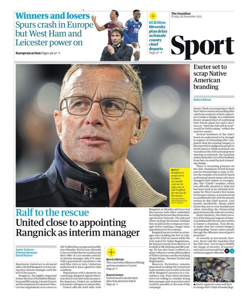 رسانهها خبر حضور رالف رانگنیک بهعنوان مربی موقت در منچستریونایتد را اعلام کردند. مربی آلمانی برای نجات میآید.