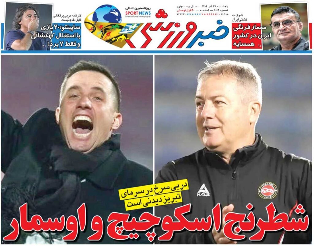 شطرنج اسکوچیچ و اوسمار/ روزنامه خبرورزشی را رایگان بخوانید FYEieHvgyy 5 days ago روزنامه خبرورزشی پنجشنبه ۲۷ آذر ۱۴۰۴ منتشر شد.