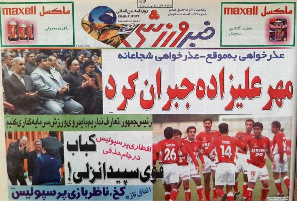 عذرخواهی بهموقع – عذرخواهی شجاعانه 3 years ago جلد روزنامه خبرورزشی یکشنبه ۱۰ آذر ۱۳۸۱ را میبینید.