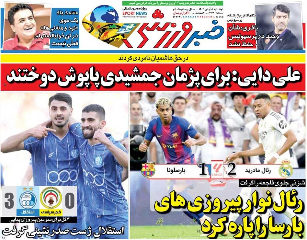 علی دایی: برای پژمان جمشیدی پاپوش دوختند/ روزنامه خبرورزشی را رایگان بخوانید FYEieHvgyy 4 days ago روزنامه خبرورزشی دوشنبه ۵ آبان ۱۴۰۴ منتشر شد.