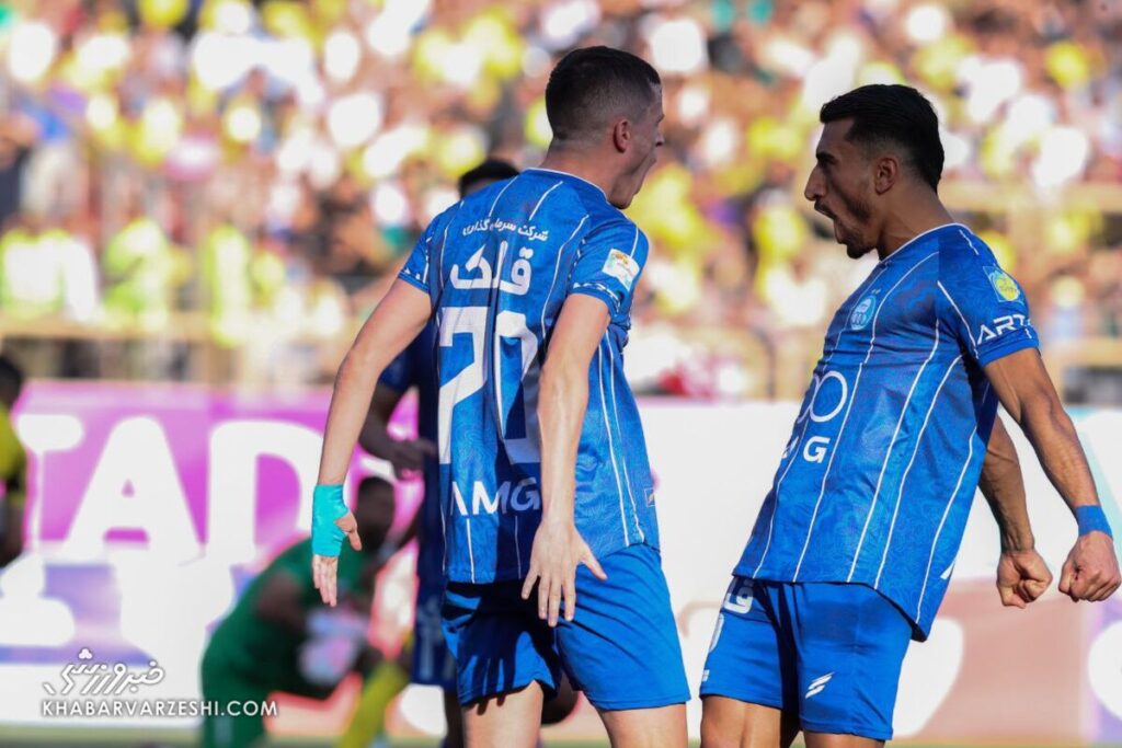تشویق ایسلندی بازیکنان و هواداران استقلال در ورزشگاه پارس شیراز پس از پیروزی سه بر صفر مقابل فجر سپاسی.