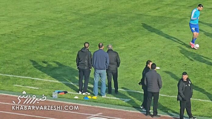 کاپیتان استقلال که به دلیل مصدومیت بازی مقابل شمس آذر را از دست داده، حین گرم کردن بازیکنان استقلال کنار زمین حاضر شد.