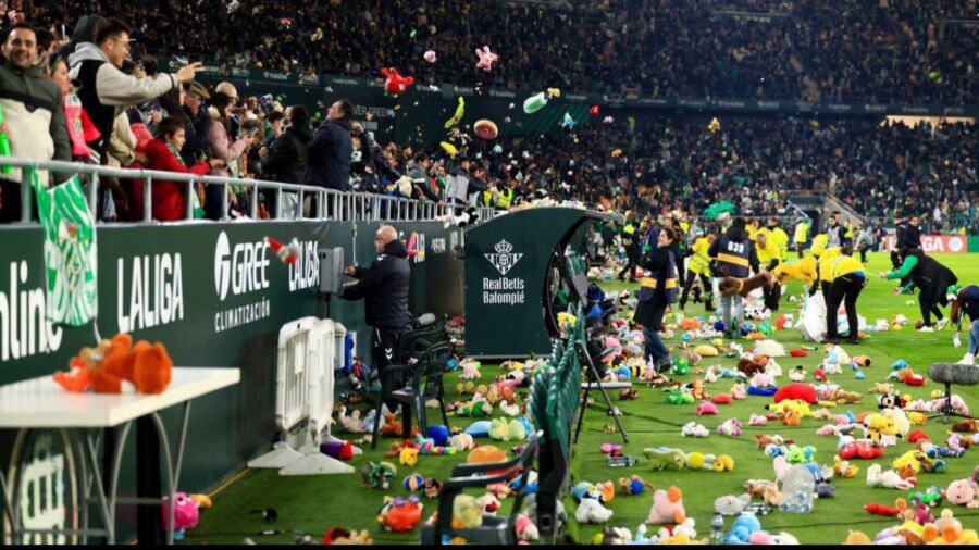 SPORTS ویدیو| صدها اسباب بازی به داخل زمین چمن پرتاب شد! By FYEieHvgyy - December 22, 2025 0 12 FacebookTwitterPinterestWhatsApp پیش از کریسمس اقدام سالانه هواداران بتیس تکرار شد و با پرتاب اسباببازیهایشان به زمین برای کودکان محروم، رفتار انسان دوستانه خود را تکرار کردند.