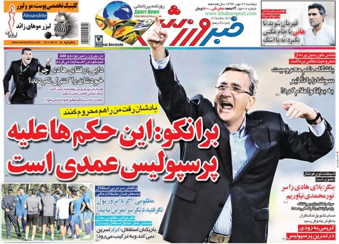 SPORTS ۱۰ سال گذشت| برانکو: این حکمها علیه پرسپولیس عمدی است By FYEieHvgyy - October 19, 2025 0 7 FacebookTwitterPinterestWhatsApp عکس جلد روزنامه خبرورزشی در تاریخ ۲۷ مهر سال ۱۳۹۴ را ملاحظه میکنید.