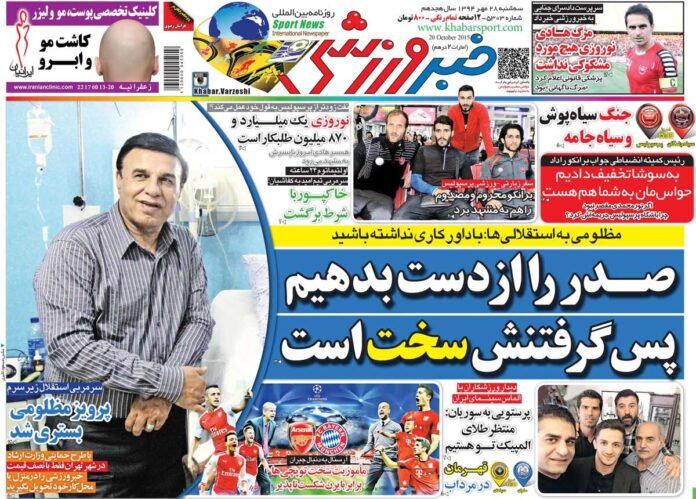 SPORTS ۱۰ سال گذشت| صدر را از دست بدهیم، پسگرفتنش سخت است By FYEieHvgyy - October 20, 2025 0 9 FacebookTwitterPinterestWhatsApp عکس جلد روزنامه خبر ورزشی در تاریخ ۲۸ مهر سال ۱۳۹۴ را ملاحظه میکنید.