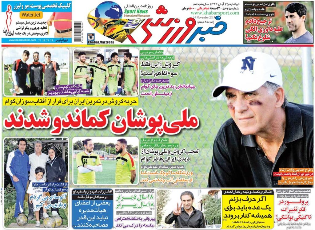 ۱۰ سال گذشت| ملیپوشان کماندو شدند FYEieHvgyy 5 hours ago عکس جلد روزنامه خبرورزشی در تاریخ ۲۵ آبان ۱۳۹۴ را ملاحظه میکنید